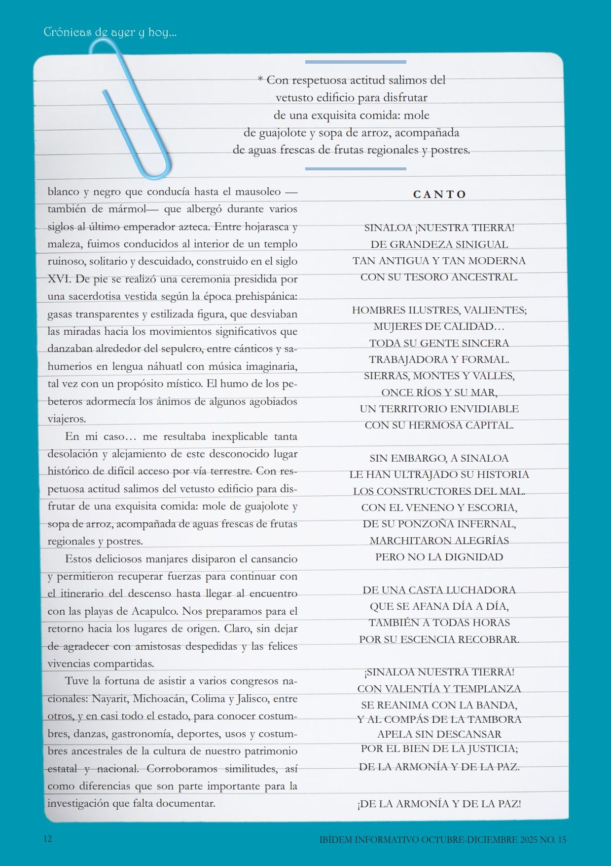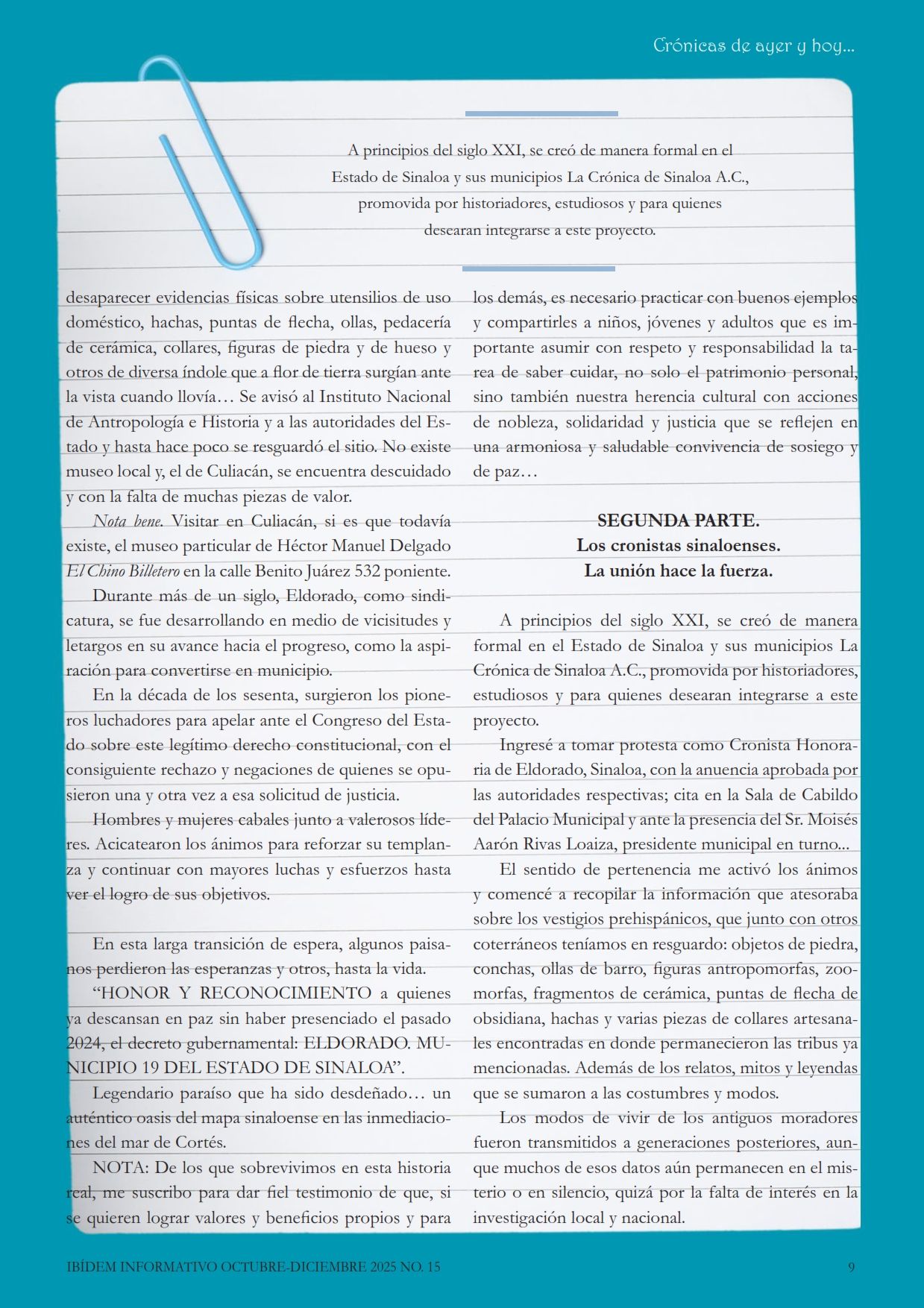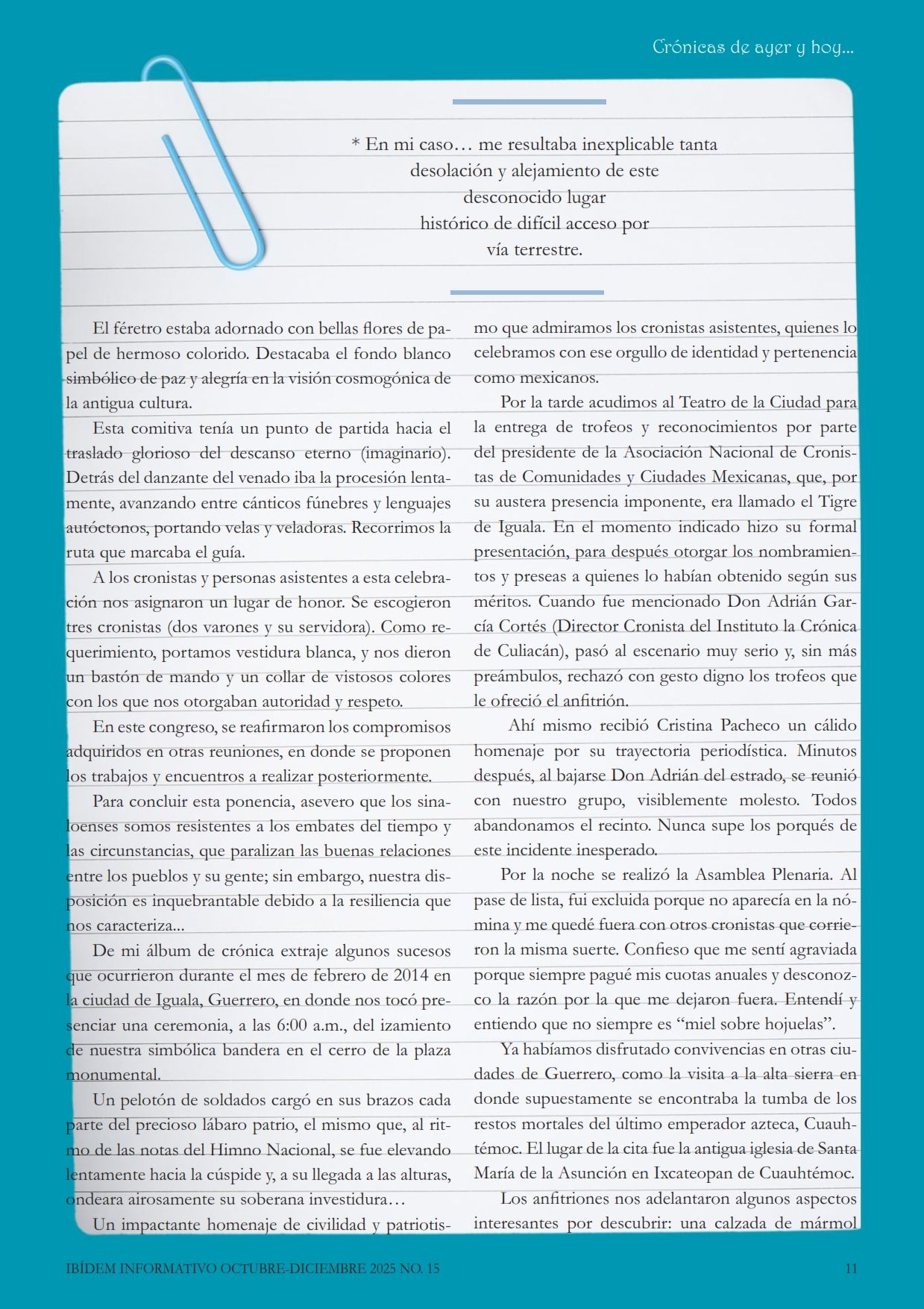 Ibídem 15 Presentación ¡Bienvenidos a la edición número 15 de Ibidem Informativo! En esta ocasión, hemos preparado